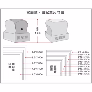廟章和神明印章的大小和尺寸,有些廟宇會依照神明指示的大小來選擇印章尺寸,有些則是依照現有的印材還有哪些材料,來選擇自己適合的大小。沒有一定的範疇。